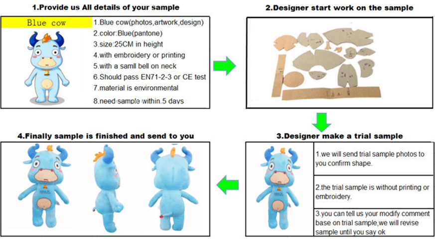 1)sample fee:60-100usd (based on toy size and style)